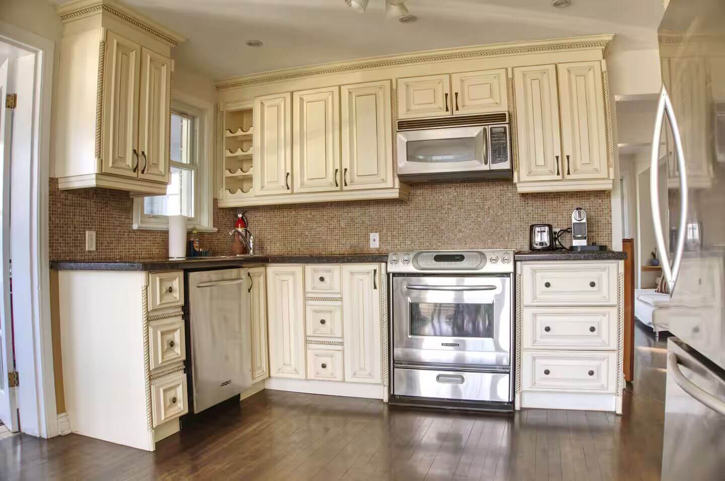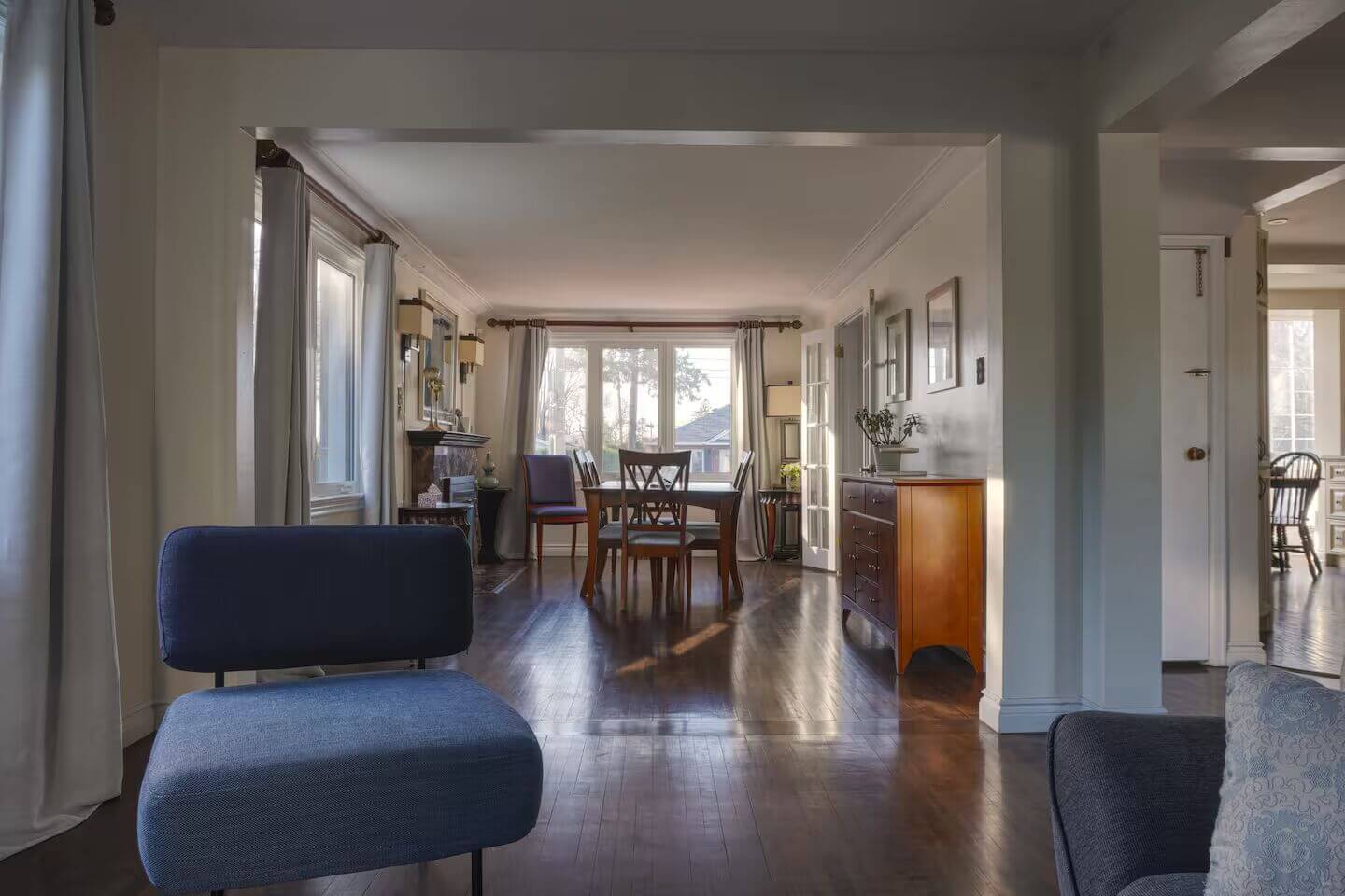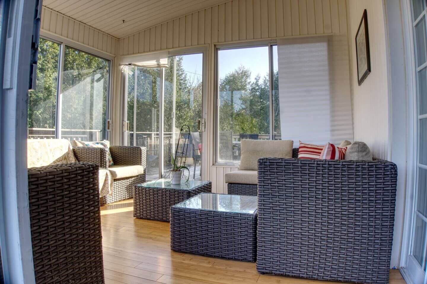 One of the highlights of this home is its generous 2,000 sq ft backyard, complete with a large deck, sunroom, patio seating, and a BBQ grill. It is the ideal setting for outdoor dining, evening conversations, or simply soaking up the fresh air. Indoors, you’ll find a fully equipped kitchen featuring modern appliances including a stainless steel stove, double oven, and dishwasher. Whether you want to prepare a quick breakfast or cook a family dinner, everything you need is at your fingertips. A spacious dining area and cozy living room with comfortable couches make the home equally inviting for meals and movie nights.